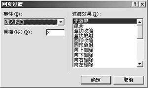 2、对网页过渡的各项进行设置。在“事件”框内,选择引发过渡效果的事件。在“过渡效果”的下拉菜单内选择不同的过渡效果,各种效果都可以在创建过程中进行预览,从而选择你最满意的效果。对过渡时间的选择,在“周期”框内,输入过渡效果所进行的时间(单位为秒)。 经过以上的设置,你的网页立刻动感十足,你不想试一试吗?