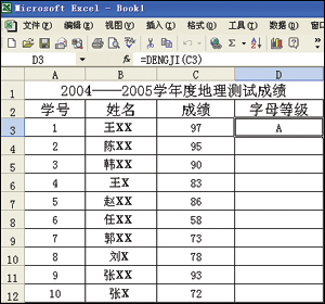 以后只要地理老师打开这个工作簿,将基本数据输入后,利用DENGJI这个宏,就可以将学生的成绩变成等级。