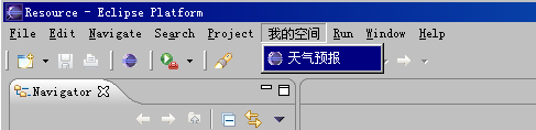 <actionSet label="Sample Action Set" visible="true" id="myplugin.actionSet"> <menu label="我的空间" id="sampleMenu"> <separator name="sampleGroup"> </separator> </menu> <action label="天气预报" icon="icons/sample.gif" class="myplugin.actions.SampleAction" tooltip="Hello, Eclipse world" menubarPath="sampleMenu/sampleGroup" toolbarPath="sampleGroup" id="myplugin.actions.SampleAction"> </action>